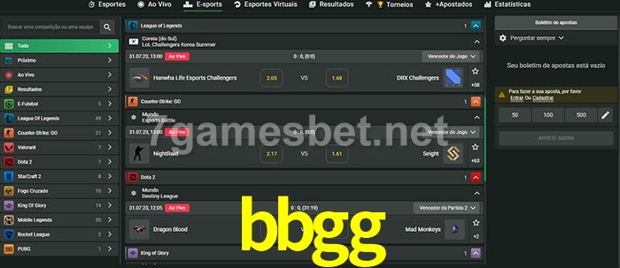 O bbgg oferece uma grande seleção de opções de apostas em e-sports com probabilidades competitivas